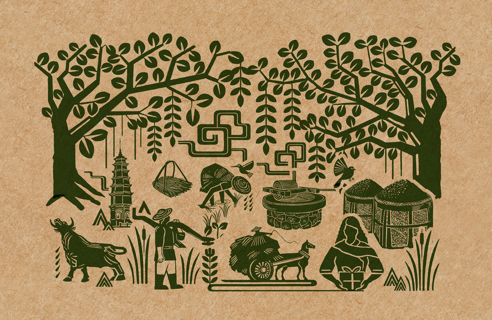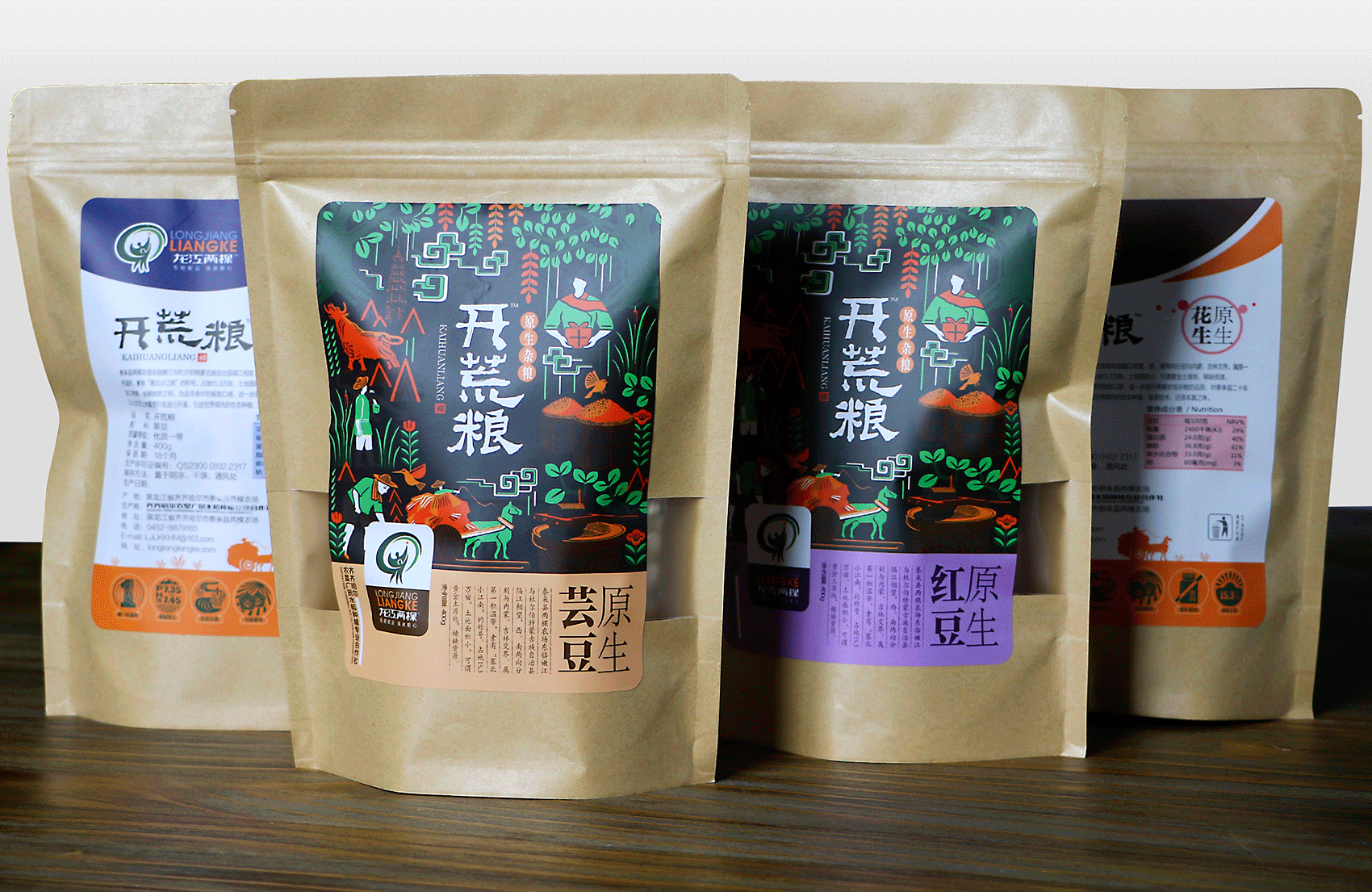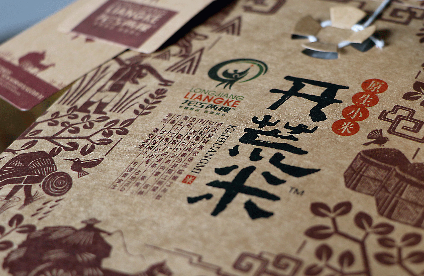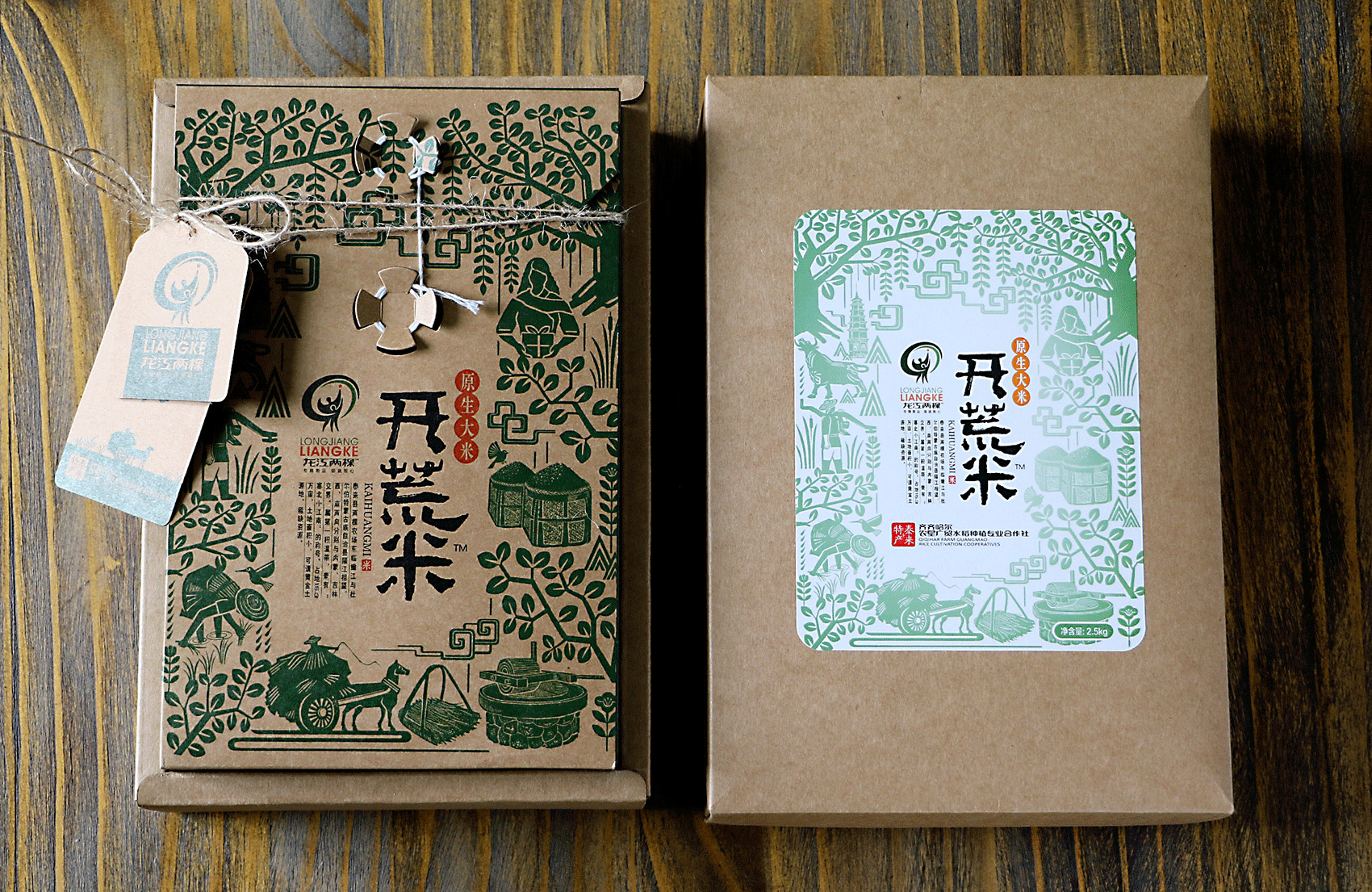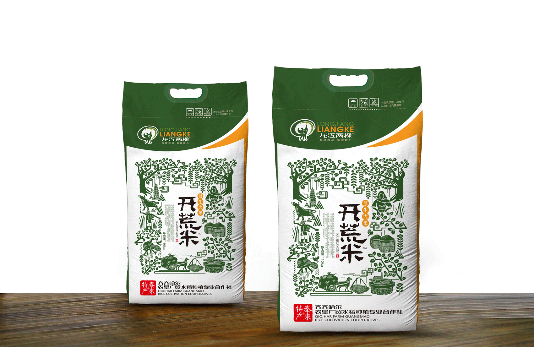 將“龍江兩棵開荒米”優(yōu)化為“龍江兩棵”、“開荒米”兩個(gè)從屬關(guān)系品牌(以主品牌“龍江兩棵”創(chuàng)造品牌統(tǒng)一元素,以“開荒米”作為副品牌界定文化風(fēng)格視覺特征)。并以此戰(zhàn)略形式,確保品牌發(fā)展全程體系紛而不亂,達(dá)成營(yíng)銷過(guò)程中不斷積累無(wú)形資產(chǎn)的戰(zhàn)略目標(biāo)。提煉“龍江兩棵”核心slogan“專精糧品,鑄就糧心“,依據(jù)泰來(lái)縣地緣、水文、人文特征,構(gòu)建品牌價(jià)值體系(涵蓋品牌特征、品牌標(biāo)簽、品牌主張、品牌優(yōu)勢(shì)、企業(yè)形象等項(xiàng)目?jī)?nèi)容),為“龍江兩棵”地標(biāo)性品牌建設(shè)奠定基礎(chǔ)。 根據(jù)品牌戰(zhàn)略思路,以“開荒米”產(chǎn)品優(yōu)勢(shì)與“開荒”文化形態(tài)進(jìn)行整合,將“開荒”升級(jí)為一種經(jīng)營(yíng)理念與精神,以優(yōu)質(zhì)的文創(chuàng)作品訴明鮮明的品牌個(gè)性,形成“勤奮的勞作換取最值得信任的產(chǎn)品”的文化邏輯關(guān)系,避免品牌同質(zhì)化。在品牌文化的表述全過(guò)程中,注重對(duì)泰來(lái)縣自然環(huán)境優(yōu)勢(shì)、歷史積淀的表達(dá),將“龍江兩棵”品牌包裝成泰來(lái)縣的地標(biāo)性文化符號(hào)。
