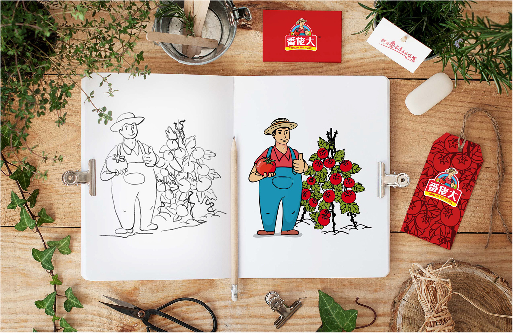 越來(lái)越多的案例告訴我們,那些擁有生命力的成功品牌大多數(shù)都擁有一個(gè)成熟穩(wěn)定的IP形象,能將消費(fèi)者的購(gòu)買(mǎi)行為與品牌及IP所營(yíng)造的故事連接在一起,讓品牌更具有人格化魅力,同時(shí)能夠快速拉近與消費(fèi)者的距離,繽策原創(chuàng)設(shè)計(jì)出一個(gè)憨厚質(zhì)樸的番茄農(nóng)人形象來(lái)構(gòu)建品牌IP,頭頂遮陽(yáng)的草帽,身著背帶褲與紅T恤,面帶自豪的微笑,一手捧著紅艷艷的番茄,一手豎起大拇指,似乎在告訴消費(fèi)者經(jīng)過(guò)綠色種植、統(tǒng)一管理的品質(zhì)番茄歡迎每一個(gè)人品嘗,將番佬大這三個(gè)字生動(dòng)形象的表現(xiàn)出來(lái),在終端應(yīng)用中醒目惹眼,具有極強(qiáng)的親和力,并讓消費(fèi)者能夠快速記憶。