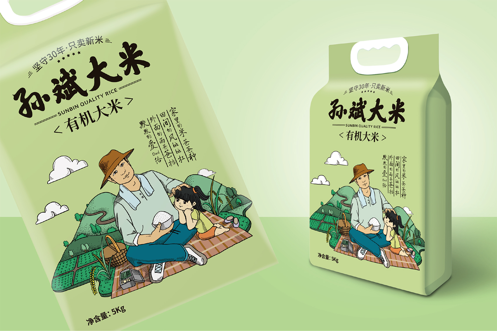 黑龍江孫斌鴻源農(nóng)業(yè)開發(fā)集團(tuán)有限責(zé)任公司成立于2009年3月5日,位于黑龍江省東北部樺南縣。集團(tuán)下轄鴻源種業(yè)、鴻源糧油貿(mào)易和黑龍江寒地雜交水稻工程技術(shù)等多個(gè)公司,注冊(cè)資本6000萬元,年產(chǎn)值1.2億元,是一家集水稻科研、生產(chǎn)、收儲(chǔ)、加工、銷售和服務(wù)于一體的國(guó)家級(jí)產(chǎn)業(yè)化扶貧龍頭企業(yè)。旗下覆蓋多種稻米產(chǎn)品,如鴨稻米、胚芽米、珍珠米等,產(chǎn)品線復(fù)雜,產(chǎn)品種類繁多。 企業(yè)希望通過電商營(yíng)銷,以點(diǎn)帶面將孫斌大米這一品牌植入消費(fèi)者心智,但原有包裝風(fēng)格各異,沒有完整統(tǒng)一的視覺符號(hào)無法傳達(dá)品牌形象,同業(yè)不能讓消費(fèi)者辨識(shí)到品牌,無法達(dá)到品牌集群效應(yīng)。