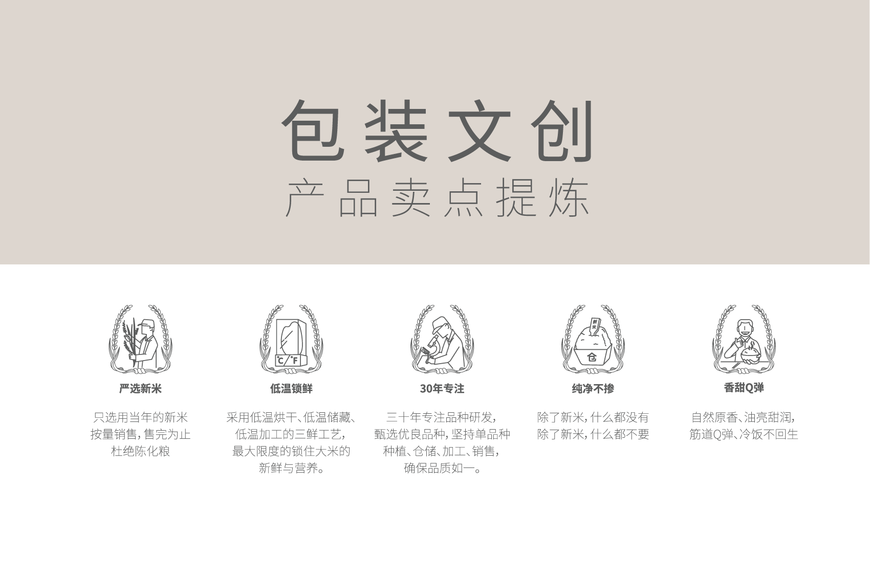 企業(yè)選擇旗下五款產(chǎn)品代表高中低三檔產(chǎn)品代表品牌,通過電商渠道拓展市場(chǎng),并將其打造成線上爆款產(chǎn)品,從而帶動(dòng)線下其他產(chǎn)品的銷售,前有多年經(jīng)營(yíng)品牌印象深入人心的老牌大米,如金龍魚、福臨門等,后有眾多品牌形象獨(dú)特完備的新型大米品牌頗具優(yōu)勢(shì),在競(jìng)爭(zhēng)如此激烈的電商市場(chǎng),如何找到既符合產(chǎn)品特點(diǎn),傳遞自身優(yōu)勢(shì)與市場(chǎng)的獨(dú)特占位?這成了企業(yè)束手無策的難題。