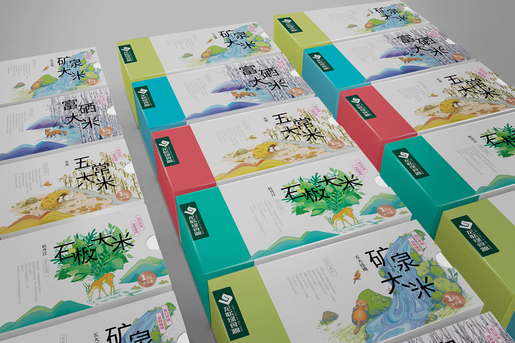 以統(tǒng)一的包裝材質(zhì),首先向市場傳達(dá)環(huán)保、健康的時代大主題。 以產(chǎn)品文化(文創(chuàng))與視覺創(chuàng)意進(jìn)一步詳細(xì)地對產(chǎn)品優(yōu)勢概念進(jìn)行闡述,最大地突出產(chǎn)品的核心優(yōu)勢特征,并衍生出數(shù)個產(chǎn)品優(yōu)勢概念,有層次、分主次地將內(nèi)容豐富產(chǎn)品概念傳達(dá)給市場,促進(jìn)市場消費欲望,達(dá)成吸引關(guān)注與促單的最終目的。以四個獨立的環(huán)保白卡紙包裝,以講述產(chǎn)品故事的形式,將四個米種的優(yōu)勢特征展現(xiàn)給消費者,務(wù)求內(nèi)包裝表現(xiàn)風(fēng)格與禮盒的和諧統(tǒng)一,彌補大包裝無法表述全部細(xì)節(jié)的劣勢。