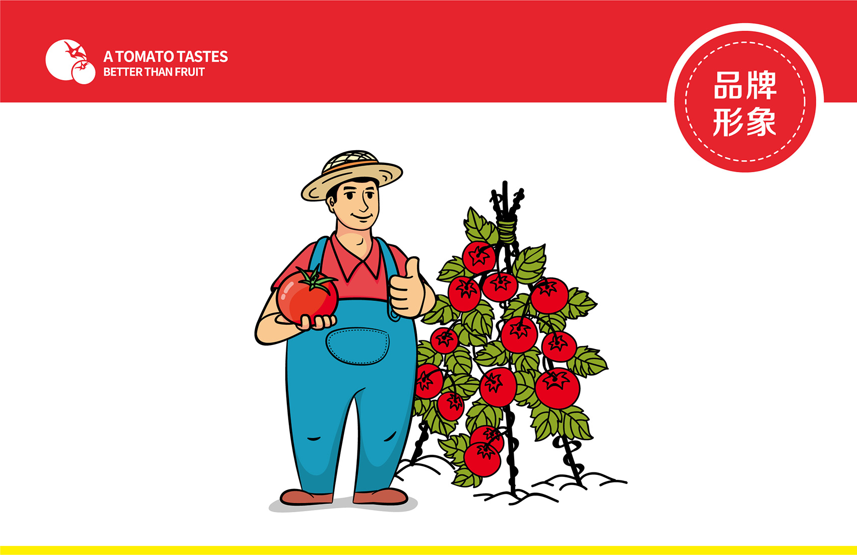 越來(lái)越多的案例告訴我們,那些擁有生命力的成功品牌大多數(shù)都擁有一個(gè)成熟穩(wěn)定的IP形象,能將消費(fèi)者的購(gòu)買(mǎi)行為與品牌及IP所營(yíng)造的故事連接在一起,讓品牌更具有人格化魅力,同時(shí)能夠快速拉近與消費(fèi)者的距離,繽策原創(chuàng)設(shè)計(jì)出一個(gè)憨厚質(zhì)樸的番茄農(nóng)人形象來(lái)構(gòu)建品牌IP,頭頂遮陽(yáng)的草帽,身著背帶褲與紅T恤,面帶自豪的微笑,一手捧著紅艷艷的番茄,一手豎起大拇指,似乎在告訴消費(fèi)者經(jīng)過(guò)綠色種植、統(tǒng)一管理的品質(zhì)番茄歡迎每一個(gè)人品嘗,將番佬大這三個(gè)字生動(dòng)形象的表現(xiàn)出來(lái),在終端應(yīng)用中醒目惹眼,具有極強(qiáng)的親和力,并讓消費(fèi)者能夠快速記憶。