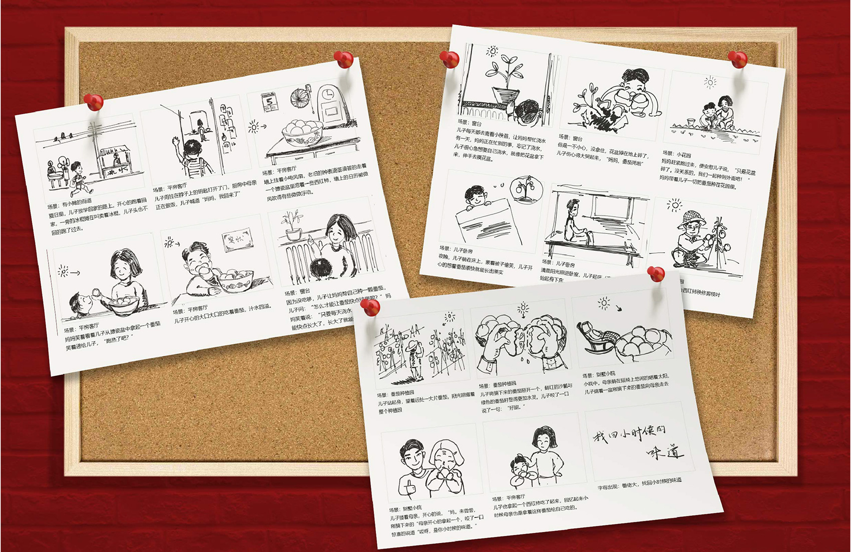 在以品牌理念與故事主導(dǎo)的回憶篇中,繽策構(gòu)思了一個(gè)有關(guān)過(guò)去回憶的小故事,一個(gè)饞嘴的小男孩,在夏日午后大汗淋漓的跑回家,媽媽親手掰開(kāi)的酸甜番茄,母子倆一起種下的種子……長(zhǎng)大后的得償所愿,繽策想表達(dá)的是曾經(jīng)的味道承載不僅僅是被埋沒(méi)在時(shí)光塵土中的老舊照片,而是那一段段難忘記憶的見(jiàn)證,找回美好的味道就是找回那些不變的美好,食物最動(dòng)人之處便是每每嘗到那種滋味,便重溫那些與最?lèi)?ài)的人之間的點(diǎn)點(diǎn)滴滴,用真情實(shí)感的構(gòu)建的故事最能打動(dòng)人心,而這與番佬大一直用高品質(zhì)生態(tài)番茄打動(dòng)所有味蕾的初心與信念不謀而合。對(duì)于場(chǎng)景中的過(guò)去場(chǎng)景的道具,繽策特別尋找了具有年代感的綠軍裝,鐵皮暖瓶,搪瓷盆,老式掛鐘等等,時(shí)代感撲面而來(lái),帶領(lǐng)觀眾穿越到了從前。沒(méi)有華麗的臺(tái)詞,沒(méi)有炫酷的特效,也沒(méi)有花哨的鏡頭,只有樸實(shí)真摯的情感流淌在其中,正如番茄酸中帶甜的味道,總能勾起平凡卻不尋常溫馨記憶。