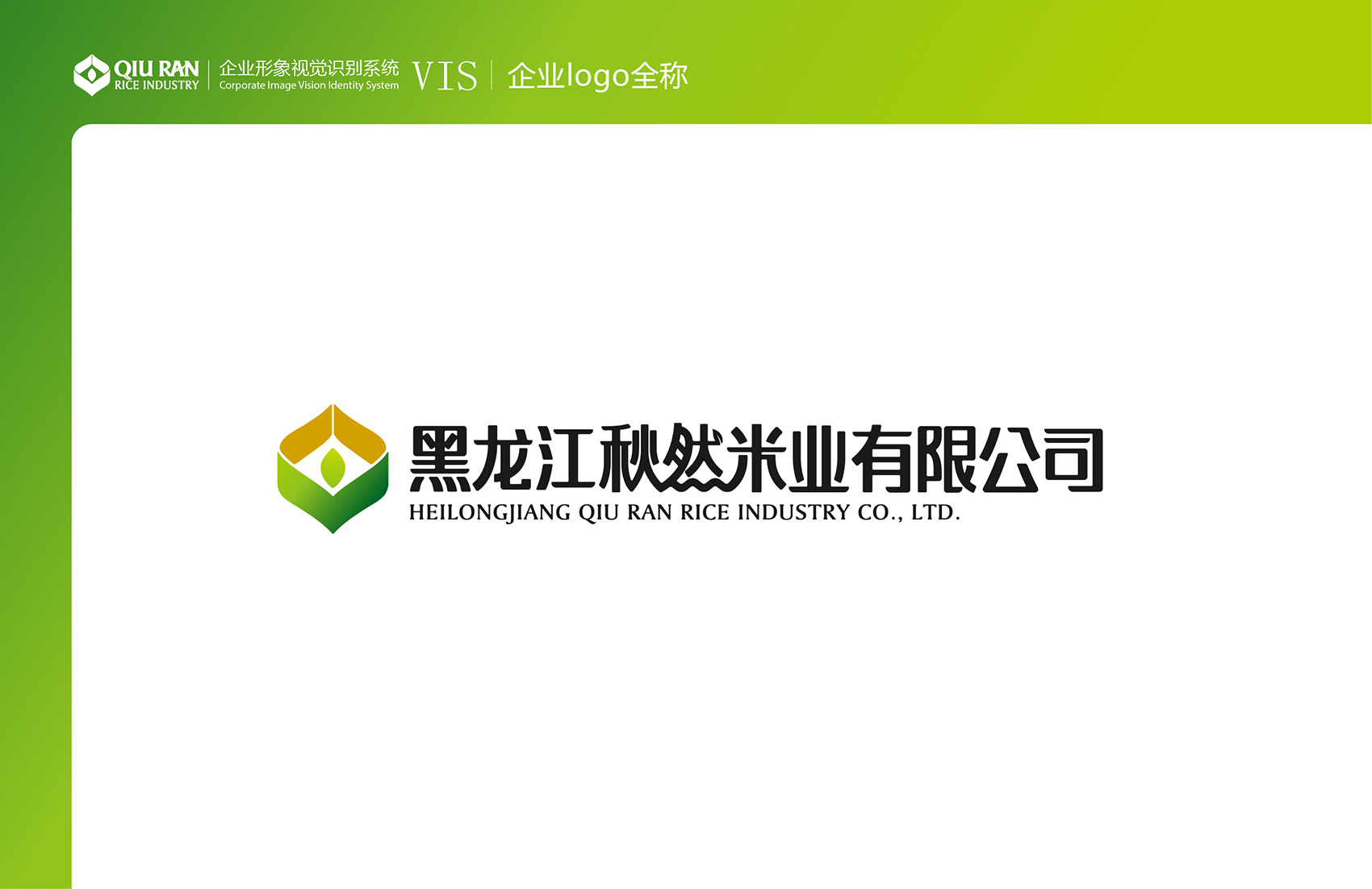 字體部分選用原創(chuàng)設(shè)計字體,中文字體在筆畫連接處組成了稻米的形狀,代表金谷豐收的美好祝愿,然字的點被藝術(shù)化處理成代表生命的綠葉,下面的四點組成萬物之源的河流,象征著方正縣水域豐富的自然環(huán)境,飄逸靈動,同時點明了企業(yè)的行業(yè)屬性,圓潤厚重的筆劃表現(xiàn)出企業(yè)真誠做人,實干做事的精神,字體結(jié)構(gòu)緊湊,辨識度高,標(biāo)志整體和諧大氣,令人過目難忘。