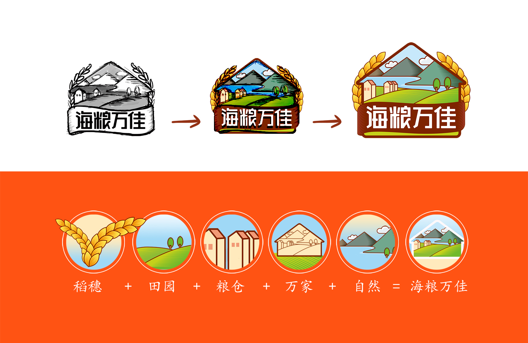 表現(xiàn)上使用平行線陰影進(jìn)行刻畫,運用平面設(shè)計立體化的手法,使得畫面立體突出,視覺上更加顯眼;色彩上選用明快活潑的色系,展現(xiàn)出豐富的層次感,深淺配比和諧,符合目標(biāo)客群審美;原創(chuàng)字體配合整體畫面設(shè)計,筆直的筆劃簡潔干凈,凸顯了企業(yè)的踏實厚重的基調(diào)。連接處理讓字體在視覺上具有流暢性,并將“田”字隱藏在“?!弊种校⒁馄髽I(yè)的行業(yè)屬性同時,向消費者傳遞企業(yè)擁有海糧臻品,在產(chǎn)品質(zhì)量、數(shù)量的雙重優(yōu)勢。