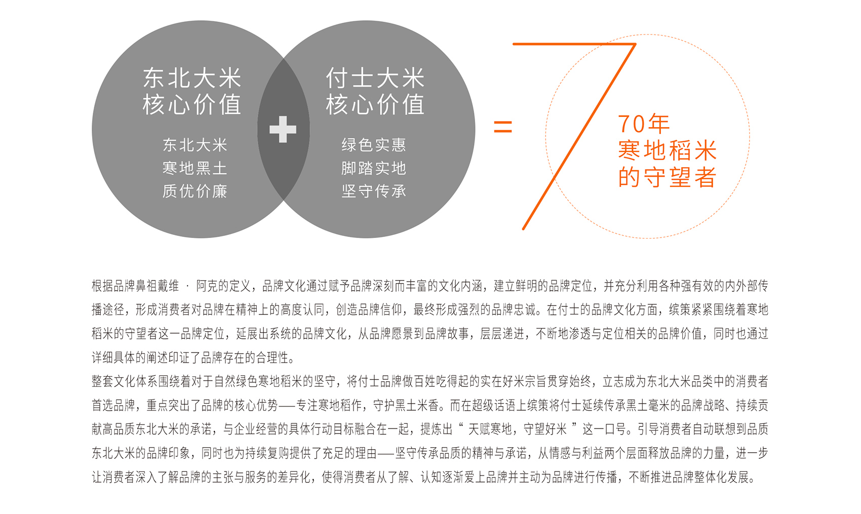 廣闊而復(fù)雜的市場(chǎng)必然產(chǎn)生最為激烈的競(jìng)爭(zhēng),這一點(diǎn)在剛需品上更為明顯,想要在商戰(zhàn)中勝出最根本的就是減低成本,提高利潤(rùn),所有的企業(yè)戰(zhàn)略、品牌定位、品牌設(shè)計(jì)、包裝設(shè)計(jì)、廣告創(chuàng)意等等都是圍繞這個(gè)核心來(lái)進(jìn)行的,所有的力量只有擰成一股繩,才能突破封鎖,這就是“所有事都是一件事”的背后原理。經(jīng)過(guò)實(shí)地考察調(diào)研和多次與企業(yè)深入座談,繽策發(fā)現(xiàn)企業(yè)擁有足夠長(zhǎng)久的歷史和當(dāng)?shù)爻錆M傳奇色彩的集體農(nóng)莊,都是企業(yè)所擁有的品牌資源,需要做的只是將這些材料去粗取精,重新整合變成消費(fèi)者能夠理解并且喜愛(ài)的形式一一落地。繽策從樺川本地水稻種植歷史切入,提煉出“寒地稻米的守望者”這一品牌核心定位,總結(jié)歸納出高緯寒地良心好米的專(zhuān)屬品牌文化,并以此打造出品牌專(zhuān)屬I(mǎi)P,系統(tǒng)化落入包裝及物料中,幫助品牌實(shí)現(xiàn)從戰(zhàn)略到落地全面執(zhí)行。