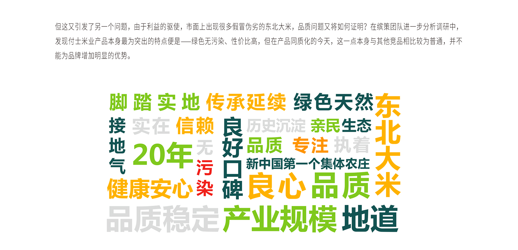 在萬(wàn)事皆變的時(shí)代,消費(fèi)群體逐漸更迭,品牌的重要性越發(fā)的突出。品牌體系不完善的老牌企業(yè)無(wú)法獲取消費(fèi)者的青睞。擁有20年歷史的付士米業(yè)也面臨著這樣的困境,在長(zhǎng)期深耕中,付士米業(yè)以?xún)?yōu)質(zhì)的寒地東北大米贏得了深圳、成都等南方經(jīng)銷(xiāo)商的認(rèn)可,但在線上及商超賣(mài)場(chǎng)中卻始終不被消費(fèi)者認(rèn)知,嚴(yán)重阻礙付士米業(yè)的發(fā)展,在這個(gè)信息爆炸的時(shí)代,怎樣通過(guò)品牌發(fā)聲,怎樣更高效率更有效的讓消費(fèi)者注意到付士,進(jìn)而選擇喜愛(ài)付士?這些問(wèn)題成了企業(yè)的必須面對(duì)、不可回避卻又亟待解決的關(guān)鍵,企業(yè)尋找繽策希望從頭開(kāi)始幫助付士仔細(xì)梳理,搭建完整的品牌體系。