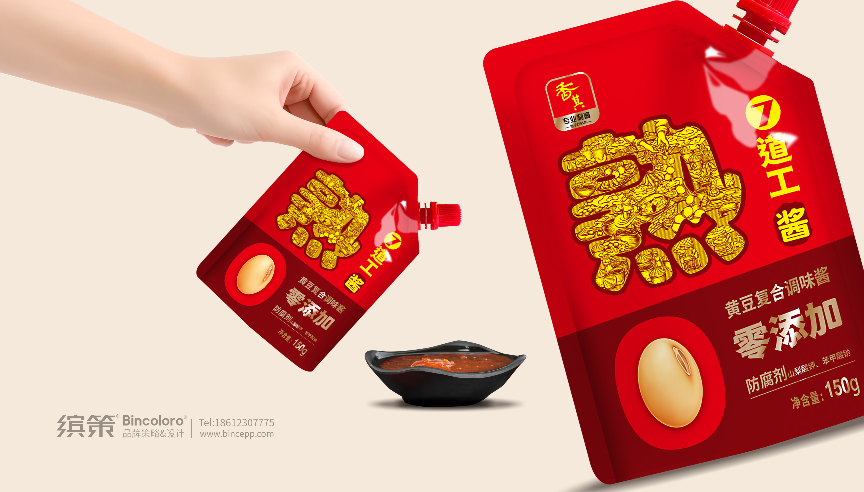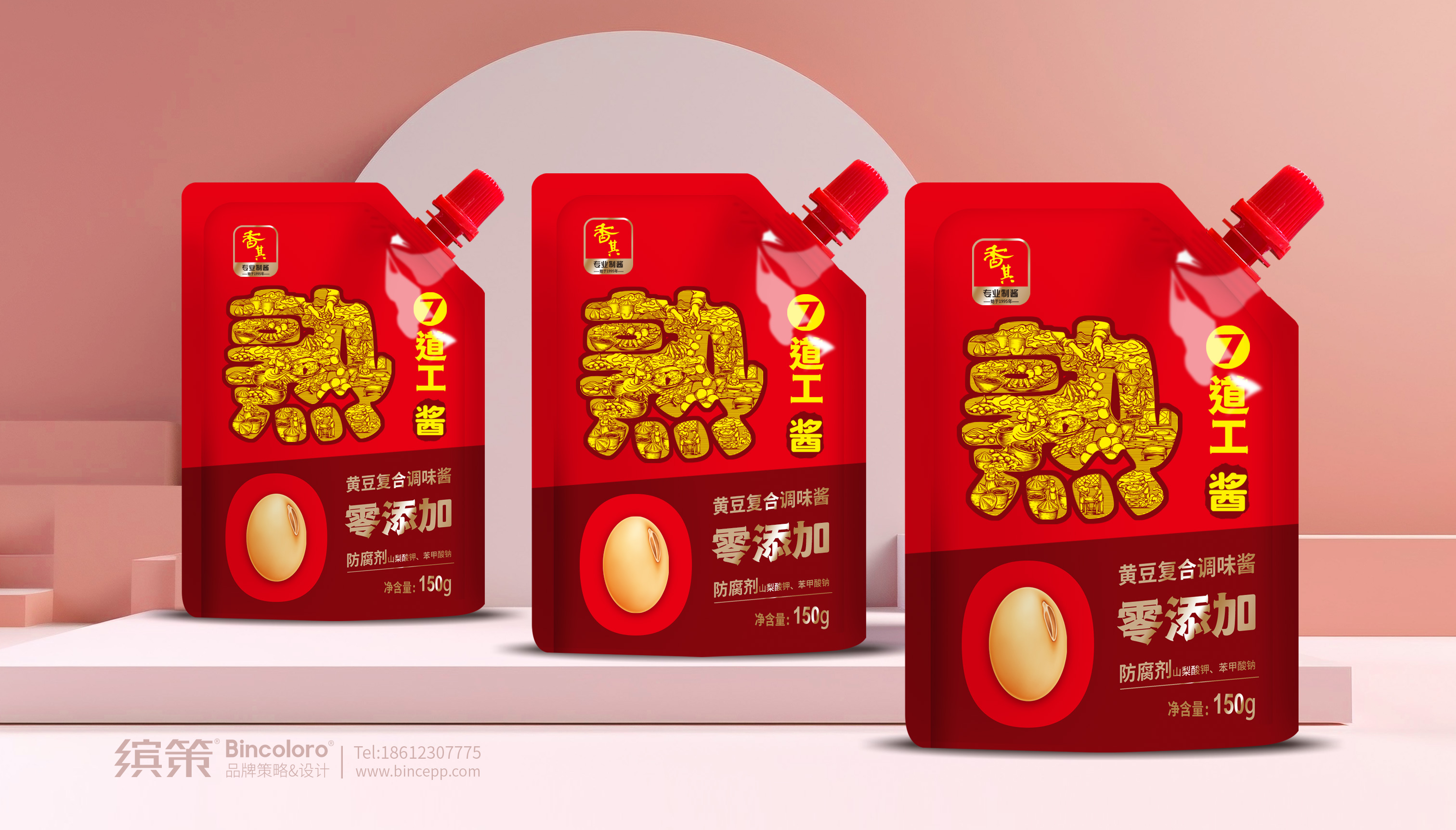 品牌的核心是直指消費(fèi)者心智,指引購買意愿,而最終呈現(xiàn)就是包裝,在最短時(shí)間內(nèi)向?qū)a(chǎn)品賣點(diǎn)呈現(xiàn)出來,并引導(dǎo)消費(fèi)者進(jìn)行記憶與購買。從認(rèn)知-記憶-認(rèn)同-復(fù)購的行為模式上來說,超級符號能最有效的吸引眼球,將核心概念植入消費(fèi)者心智,同時(shí)也提供了購買依據(jù),所以繽策將"熟"字提煉出來,結(jié)合傳統(tǒng)七道工藝與零添加的專屬特點(diǎn),共同打造獨(dú)屬于香其醬的熟醬符號。幫助品牌重塑消費(fèi)者心智。